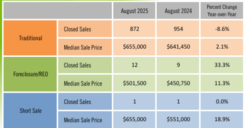 The August market reflected fewer sales and more time to close transactions, with rising prices and ample supply available, shifting the trend toward a buyers' market.